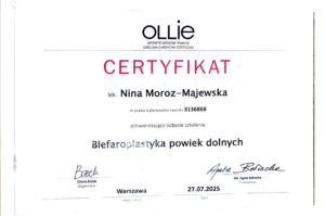 - Plastyką powiek dolnych – zabieg chirurgiczny usuwający nadmiar skóry i tłuszczu z dolnych powiek w celu odmłodzenia spojrzenia.